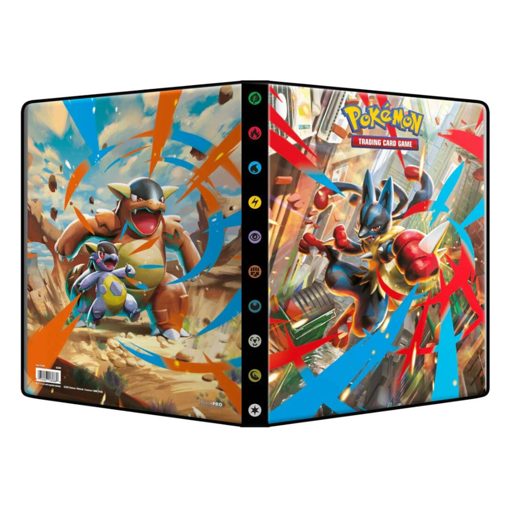 Album Pokémon 9-Pocket Mega Evolution (Ultra Pro) - En dristig mappe som viser Mega Lucario på forsiden og Mega Kangaskhan på baksiden i fantastiske fullkunstdetaljer!