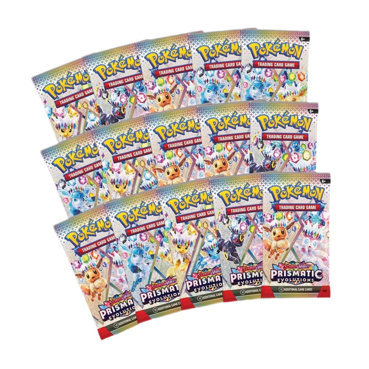 - 15 Pokémon TCG: Scarlet & Violet—Prismatic Evolutions booster packs.